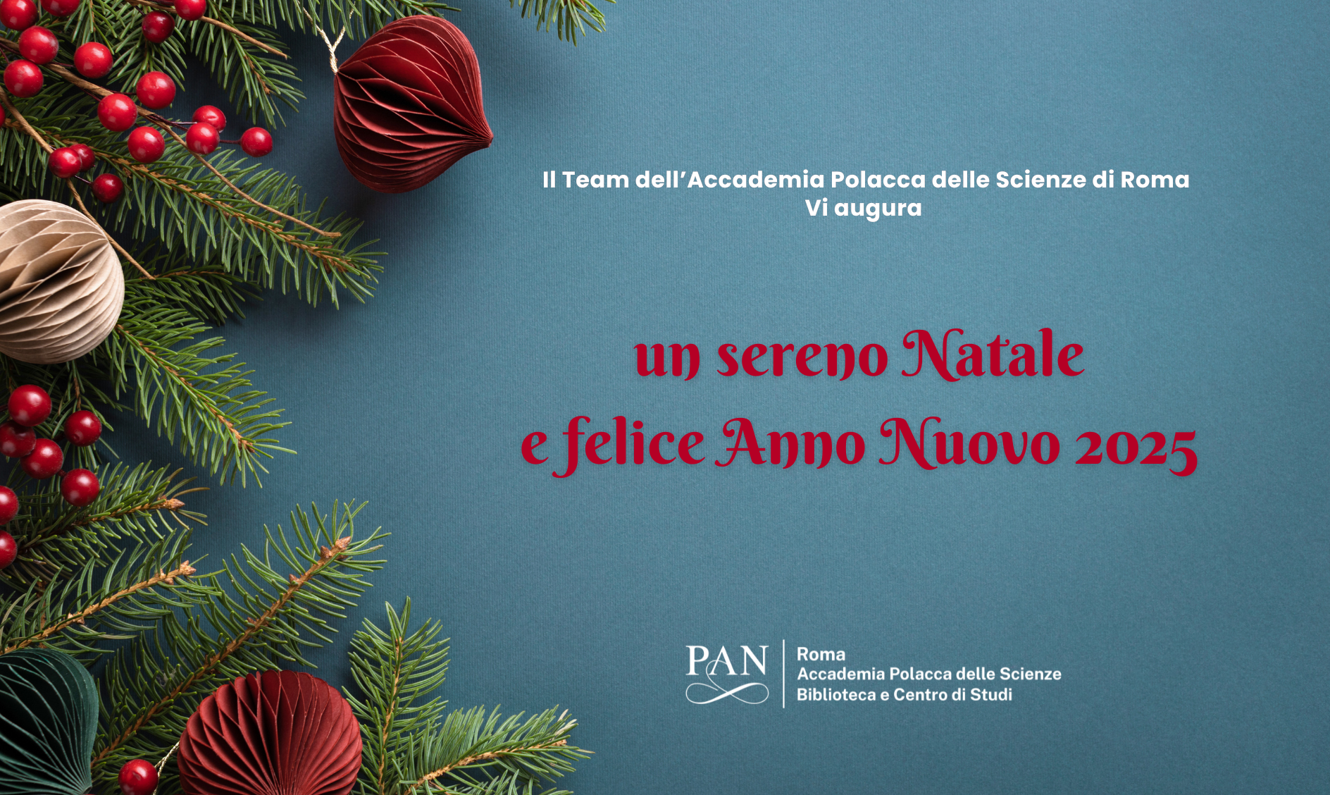 Zespół Stacji Naukowej PAN w Rzymie z okazji nadchodzących Świąt Bożego Narodzenia życzy radości, spokoju i niezapomnianych chwil spędzonych w …