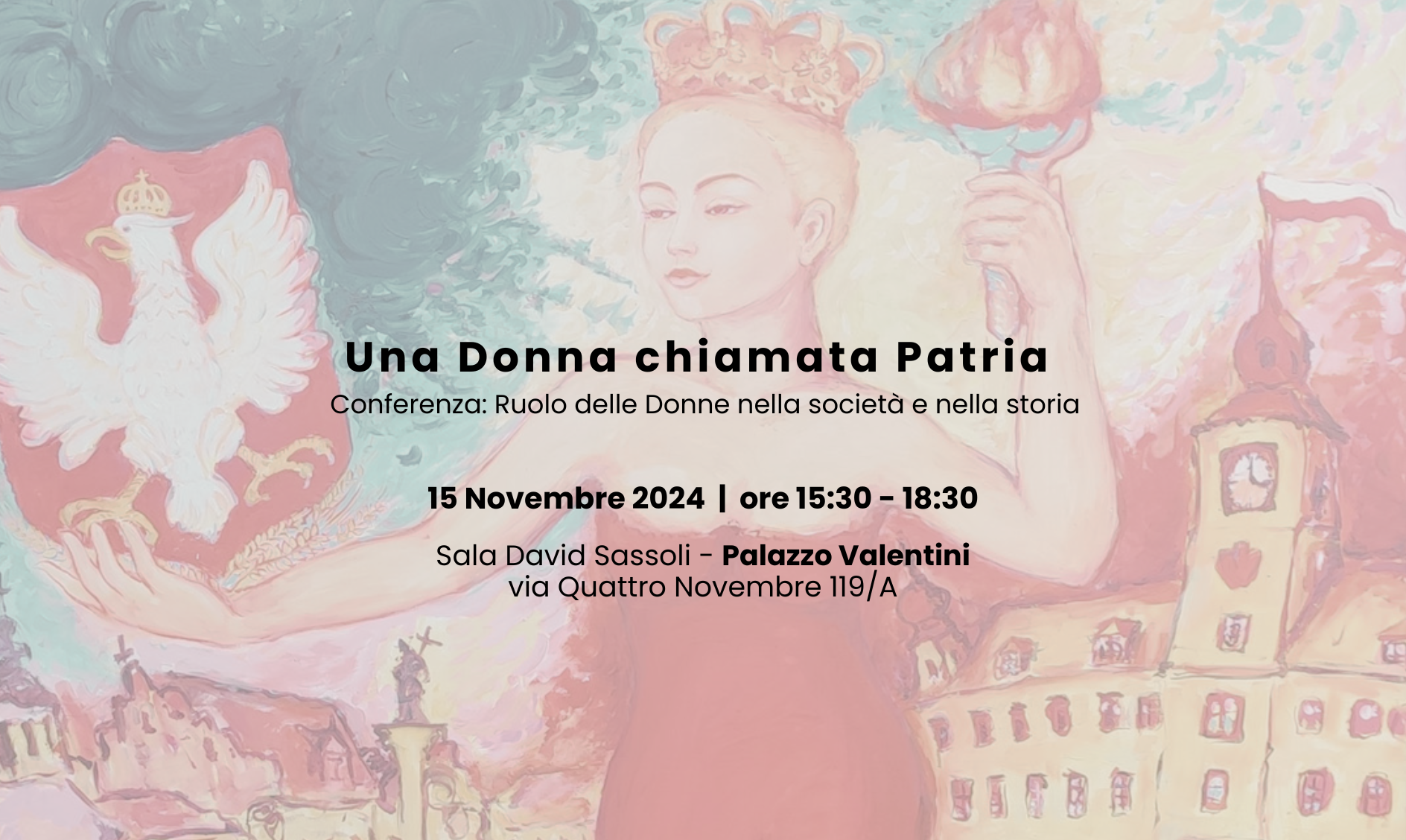 W ten piątek, 15 listopada o godz. 15:30, zapraszamy do Palazzo Valentini na spotkanie "Una donna chiamata patria. Ruolo delle donne nella societa …
