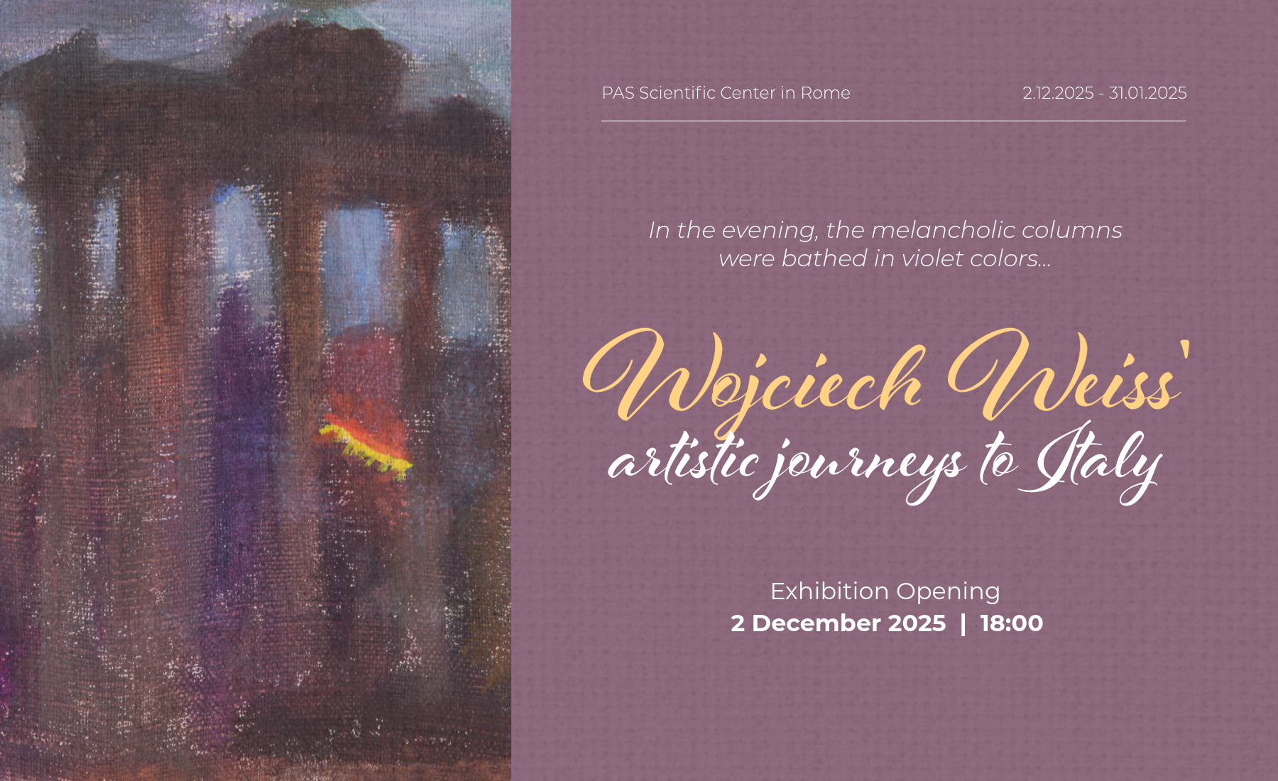 We wtorek, 2 grudnia 2025 o godzinie 18:00, w siedzibie Stacji Naukowej PAN w Rzymie odbyło się otwarcie wystawy pt. „Wieczorem smutne kolumny …