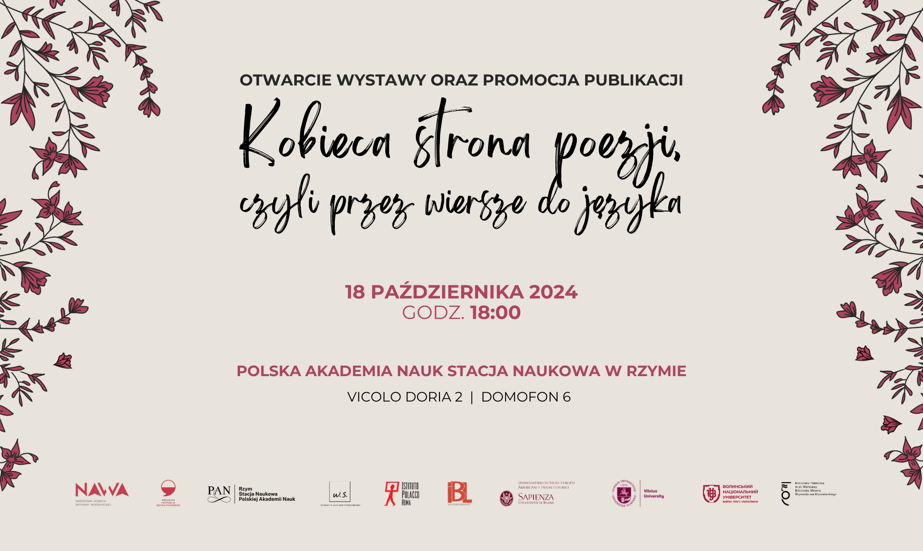 Już w ten piątek, 18 października o godz. 18:00, w Stacji Naukowej PAN w Rzymie odbędzie się podsumowanie projektu „Kobieca strona poezji, czyli przez wiersze do języka”. Podobnie jak dwa tygodnie wcześniej w Warszawie, spotkamy się z osobami zaangażowanymi w projekt, aby posłuchać ich wypowiedzi na temat przebiegu przedsięwzięć podjętych przez ostatni rok.