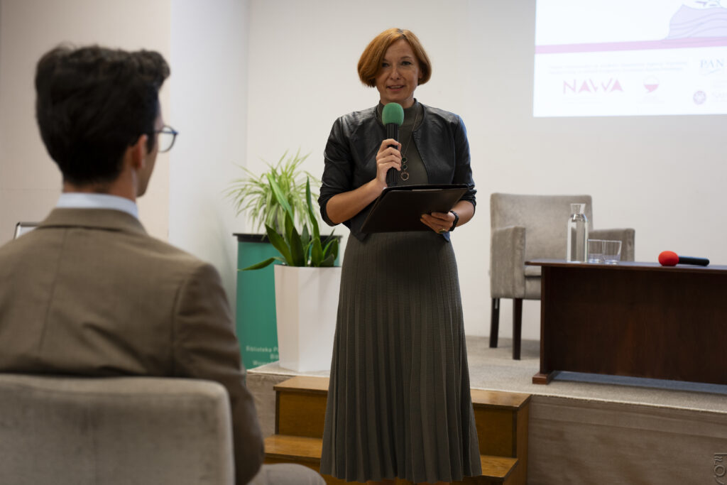 Po powitaniu zebranych przez przedstawiciela Biblioteki, słów kilka o projekcie “Kobieca strona poezji” oraz o przygotowanej publikacji wygłosiła kierowniczka projektu, dyrektorka Stacji Naukowej PAN w Rzymie, Agnieszka Stefaniak-Hrycko.