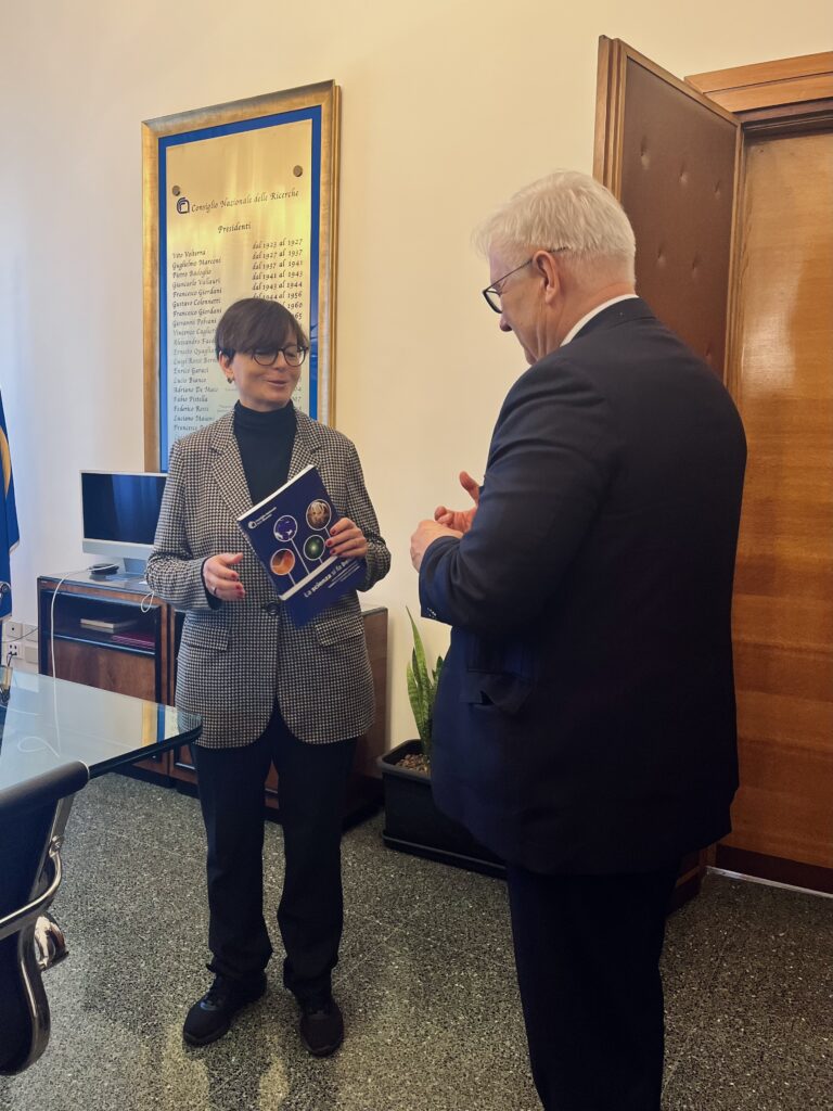 Podczas spotkania omówiono owocną, trzydziestoletnią już współpracę pomiędzy PAN a CNR oraz wspólną inicjatywę „Copernicus Dialogues” – cykl warsztatów organizowanych w ramach umowy bilateralnej PAN-CNR. Ogłoszono również, że jesienią 2025 roku w siedzibie CNR w Rzymie odbędzie się trzeci warsztat z tej serii spotkań pt. „Nowe biomolekuły do opracowywania biosensorów optycznych dla bezpieczeństwa żywnościowego i ochrony środowiska”. Pierwszy warsztat, który odbył się 27 października 2023 roku w Stacji Naukowej PAN w Rzymie, dotyczył polsko-włoskiej współpracy w dziedzinie biomedycyny. Drugi, zrealizowany 12 lipca br., podejmował natomiast temat „wykorzystania rozwiązań opartych na naturze w zrównoważonym rolnictwie i ochronie zdrowia ekosystemu”.