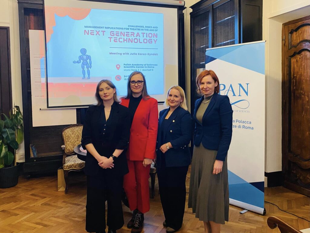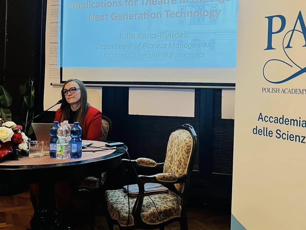 W poniedziałek, 24 lutego 2025 r. o godz. 18:00 w naszej siedzibie przy Vicolo Doria 2 odbyło się pierwsze wydarzenie w tym roku. Gościliśmy Panią Julię Karcz-Ryndak z Uniwersytetu Ekonomicznego w Krakowie, Katedry Zarządzania Procesami, która zaprezentowała wykład na temat „Challenges, Risks, and Management: Implications for Theatre in the Age of Next-Generation Technology”.