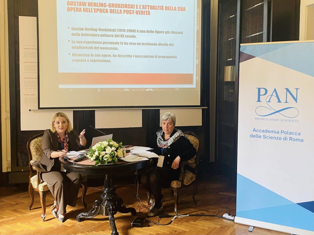 W dniach 27 – 28 marca 2025 roku w siedzibie Stacji Naukowej Polskiej Akademii Nauk w Rzymie odbyła się międzynarodowa konferencja naukowa pt. Benedetto Croce e Gustaw Herling-Grudziński: tra letteratura, storia, filosofia e linguistica. Convegno interdisciplinare / Benedetto Croce and Gustaw Herling-Grudziński: Between Literature, History, Philosophy, and Linguistics. Interdisciplinary Conference. Wydarzenie podzielone zostało na dziewięć sesji tematycznych, podczas których trzydzieścioro prelegentów z Polski i Włoch wygłosiło referaty w językach włoskim oraz angielskim
