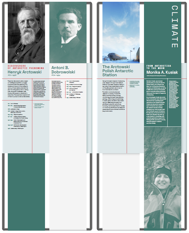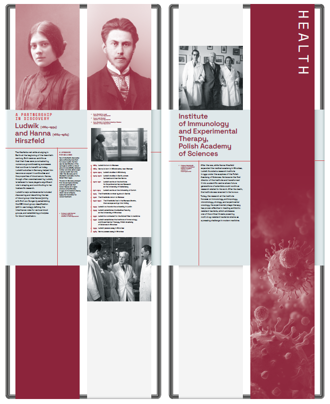 Wystawa podzielona jest na kilka sekcji tematycznych, które prezentują osiągnięcia polskich naukowców w wybranych obszarach badawczych, nawiązując jednocześnie do priorytetów programu „Horyzont Europa”, takich jak:
