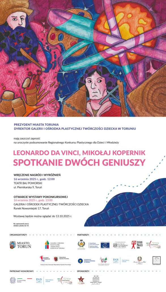 16 września 2025 r. w Toruniu odbyło się uroczyste podsumowanie Regionalnego Konkursu Plastycznego „Leonardo da Vinci, Mikołaj Kopernik – spotkanie dwóch geniuszy”, którego Stacja Naukowa PAN w Rzymie jest partnerem i patronem honorowym.