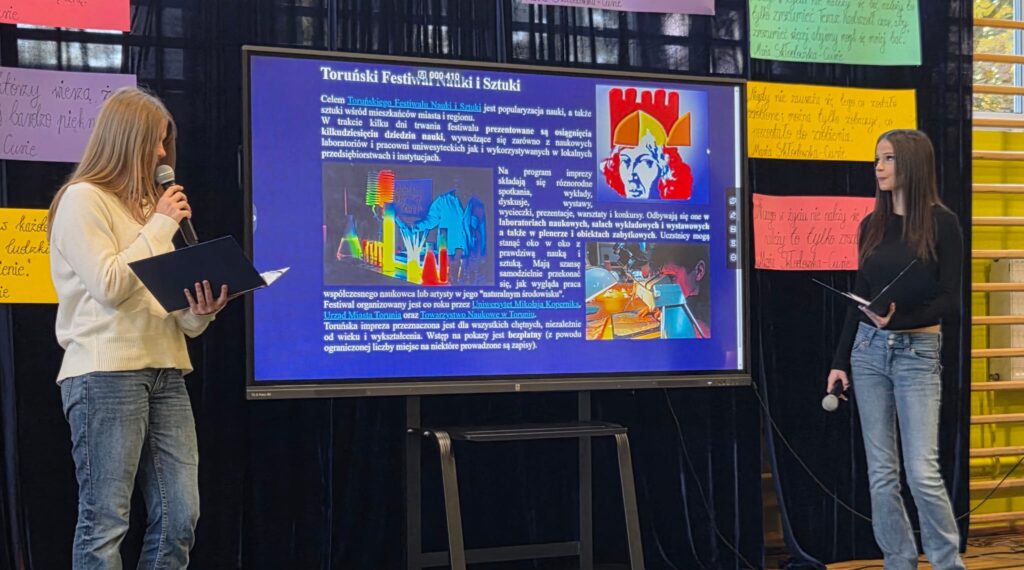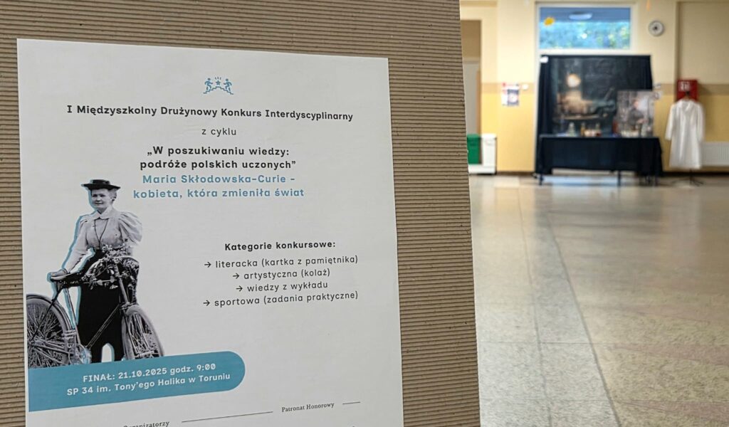 21 października 2025 roku w Szkole Podstawowej nr 34 w Toruniu odbył się międzyszkolny konkurs „W poszukiwaniu wiedzy” skierowany do uczniów klas ósmych, poświęcony wyjątkowej postaci – Marii Skłodowskiej-Curie, kobiecie, która zmieniła świat. Inspiracją dla konkursu była wystawa „Maria Skłodowska-Curie we Włoszech: trzy podróże, jedna pasja”.