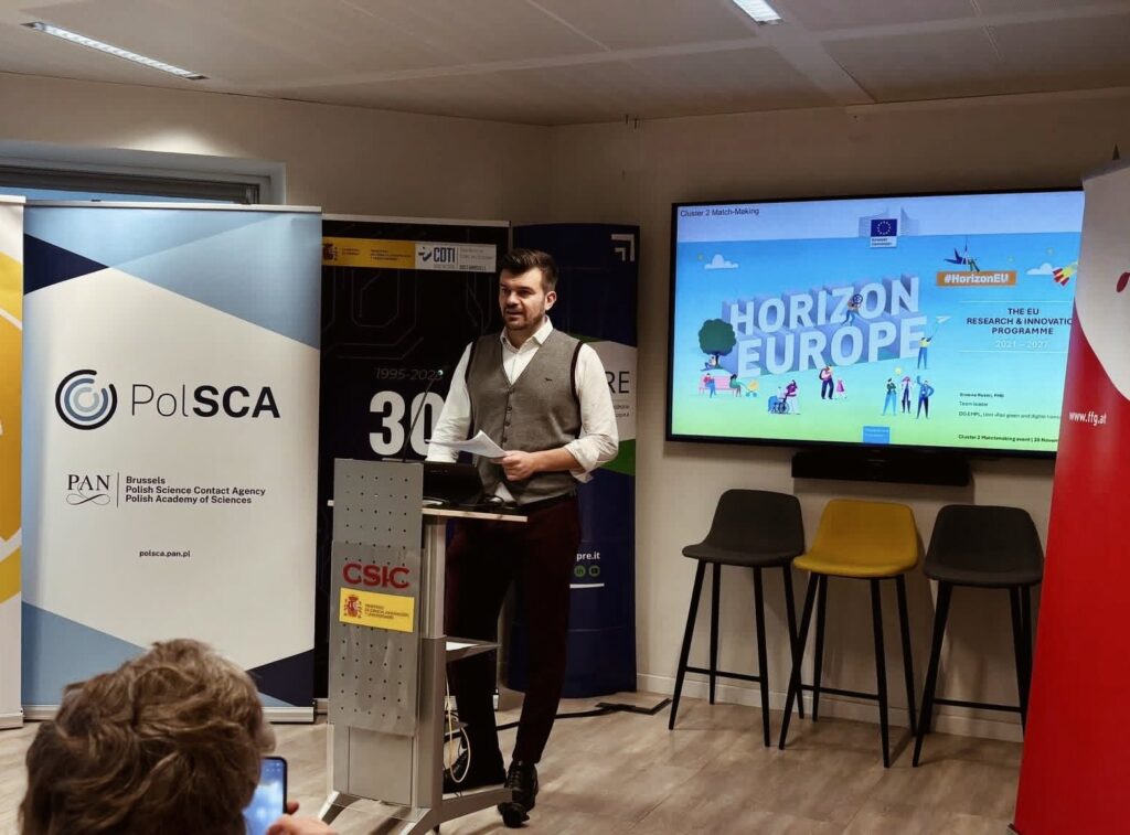 Spotkanie skierowane było do naukowców oraz osób zaangażowanych lub planujących zaangażowanie w Program Ramowy Horyzont Europa.