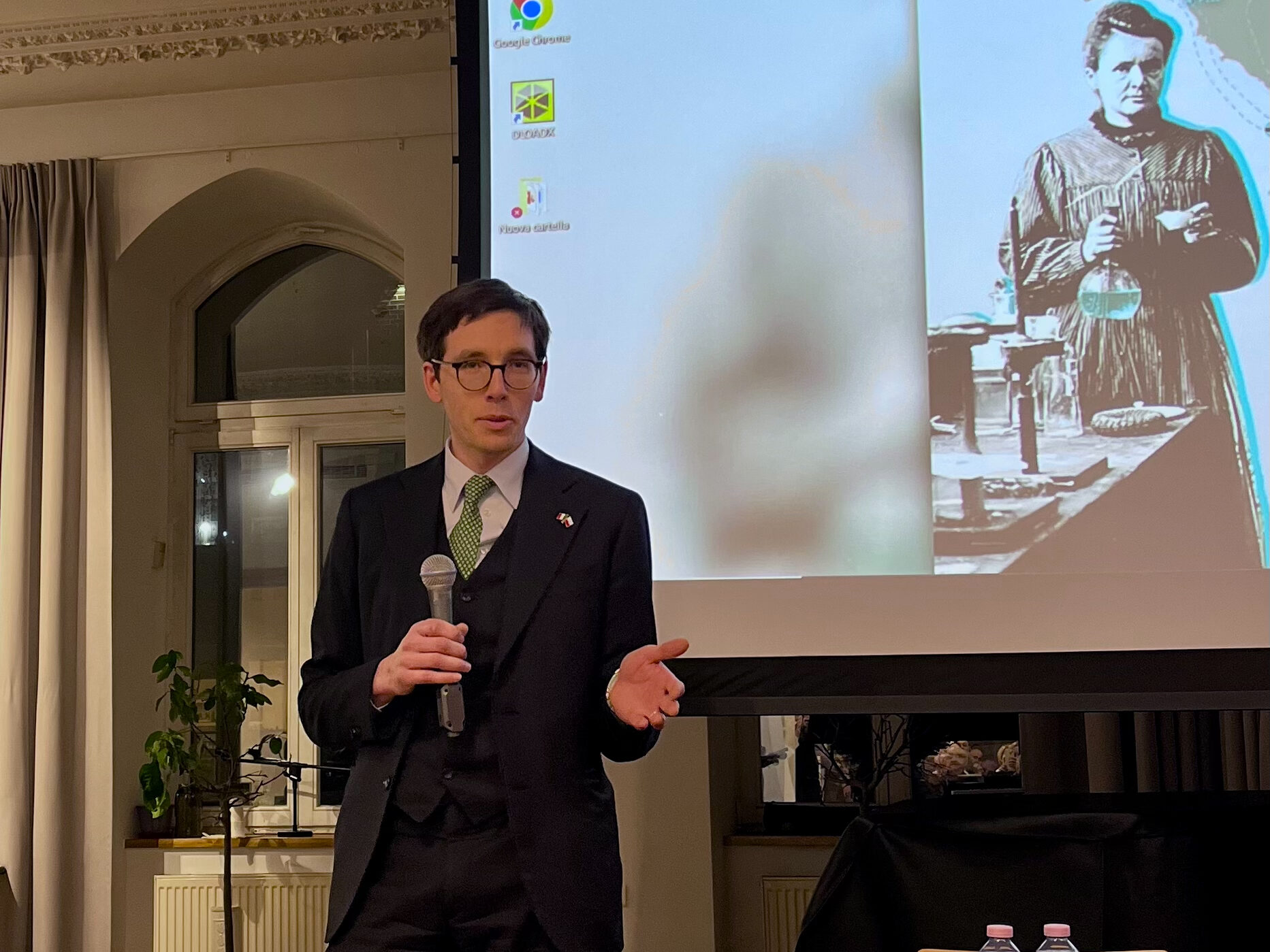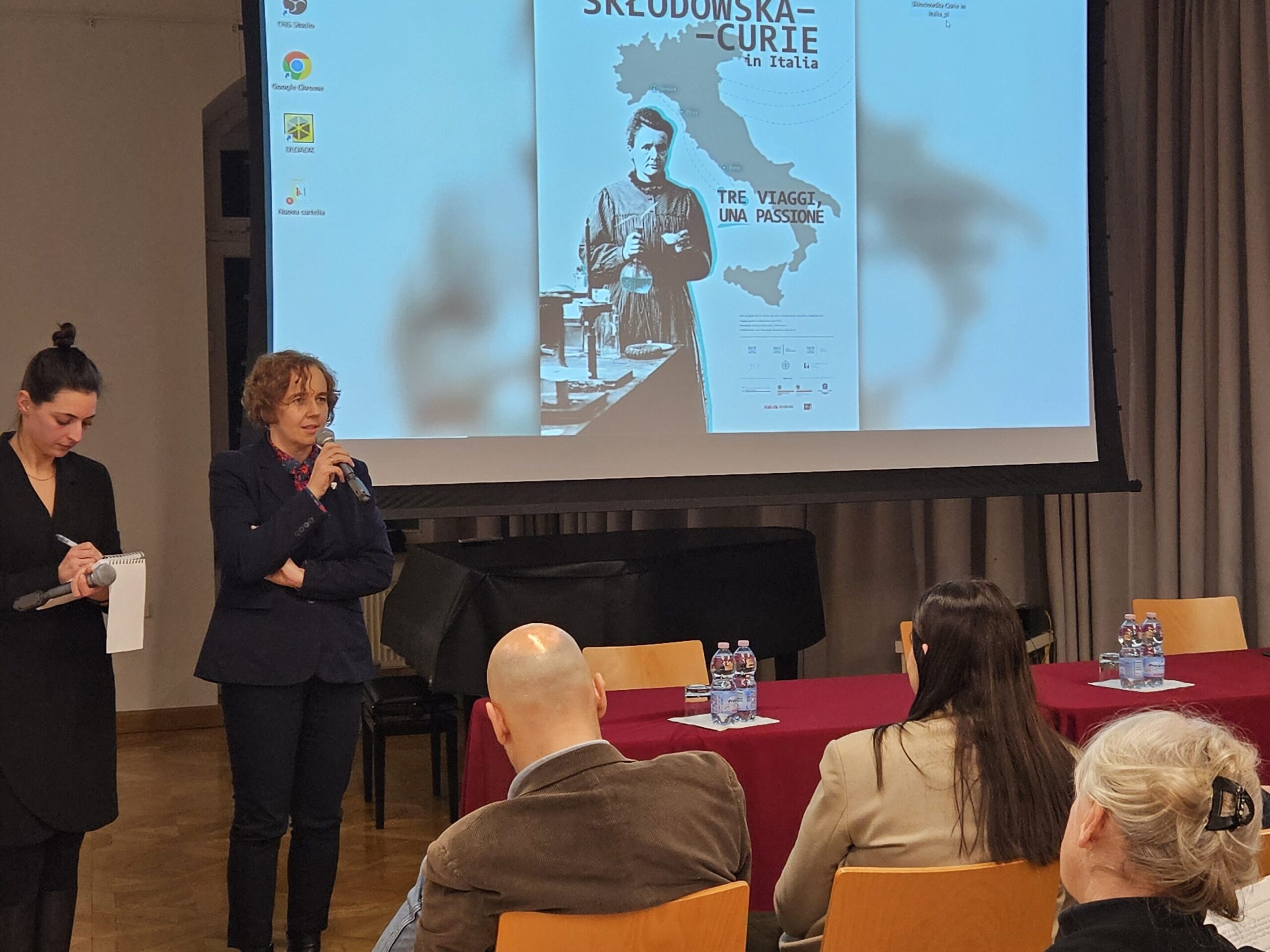 W dniach 15 stycznia – 3 lutego 2026 roku Włoski Instytut Kultury w Warszawie będzie gościć naszą wystawę poświęconą Marii Skłodowskiej-Curie pt. „Maria Skłodowska-Curie we Włoszech: trzy podróże, jedna pasja”, ukazującą w nowym świetle relacje wybitnej uczonej z włoską społecznością naukową pierwszych dekad XX wieku, jej podróże do Włoch oraz spotkania i współprace, które przyczyniły się do rozwoju ówczesnych badań naukowych.