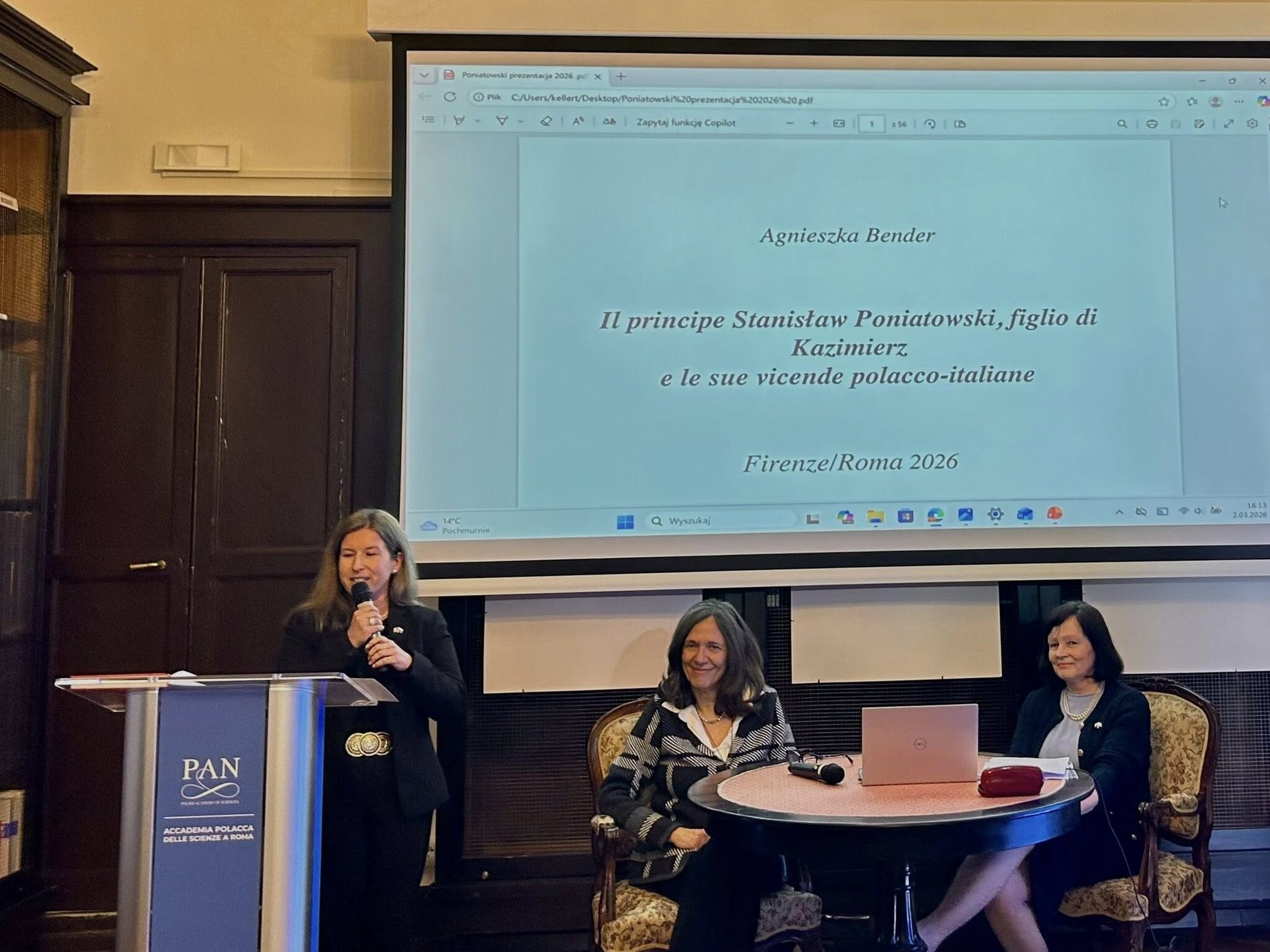 W poniedziałek, 2 marca 2026 roku, o godz. 18:00, w Stacji Naukowej PAN w Rzymie odbyło się spotkanie poświęcone książce „Il Principe Stanislao Poniatowski e l’Italia / Książę Stanisław Poniatowski i Włochy”, będącej pokłosiem konferencji o tym samym tytule, która odbyła się we wrześniu 2024 roku w Rzymie.