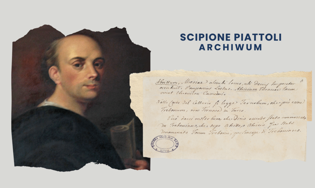 Zdigitalizowane Archiwum Piattolego to zbiór kolekcji rękopisów i materiałów źródłowych związanych z działalnością Scipione Piattolego – włoskiego uczonego i doradcy króla Stanisława Augusta. Zawiera dokumenty dotyczące historii prawa, medycyny, edukacji, życia społecznego, nauki i literatury, a także osobiste notatki, korespondencję i wykłady Piattolego. Baza cyfrowa została utworzona w ramach projektu „Studying, digitizing and sharing of the special collections of the 'Library J. Michałowski’ in Rome”, finansowanego z Narodowego Programu Rozwoju Humanistyki.